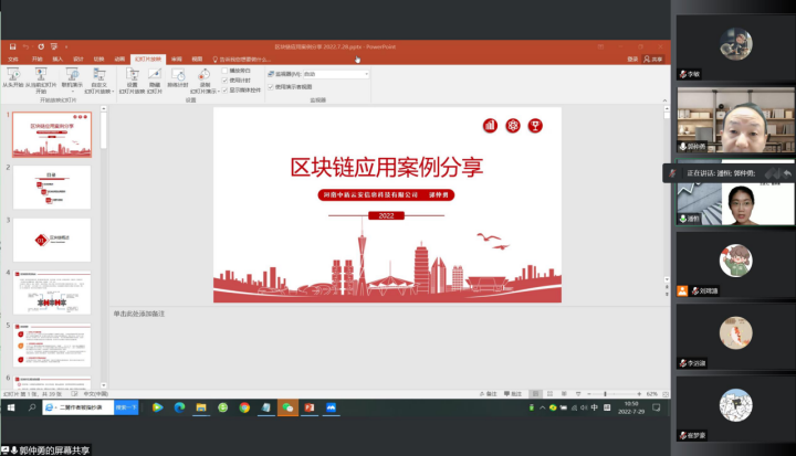 做了《区块链应用案例分享》的线上讲座。讲座由副院长潘恒主持。