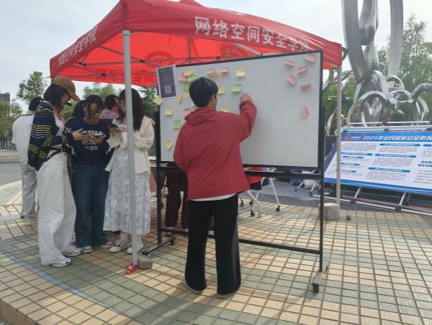 在活动现场,志愿者们精心布置了国家安全知识互动答题区。他们利用扫码答题赢取第二课堂学分的激励措施,吸引了大量学生积极参与。此外,通过设立国家安全知识宣传展板、悬挂醒目的宣传横幅、发放宣传资料、设置咨询台以及分享心得感悟以领取礼品等多种形式,向师生们普及了国家安全和网络安全的相关知识,有效提升了大家的爱国意识以及维护国家安全的责任感和使命感。