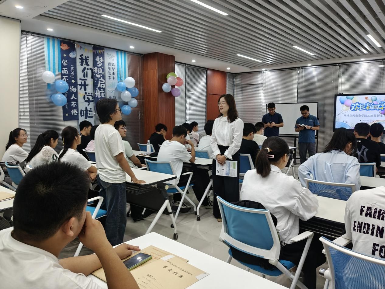 于9月7日下午17点在三号组团楼A1208教室举办2025级本科新生见面会,学院党支部副书记、副院长邢颖、新生班主任姚中原、教师代表张楠和全体25级本科新生参加。会议由学工办副主任郭政良主持。