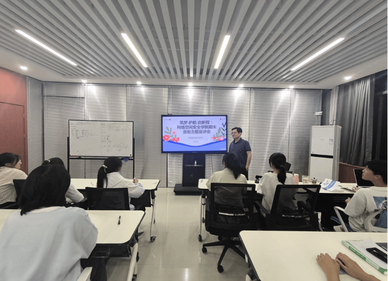 在三号组团楼A1208教室举办“筑梦·护航·启新程”期末资助主题宣讲会。会议由班主任张龙主持,全体本科生共同参加。