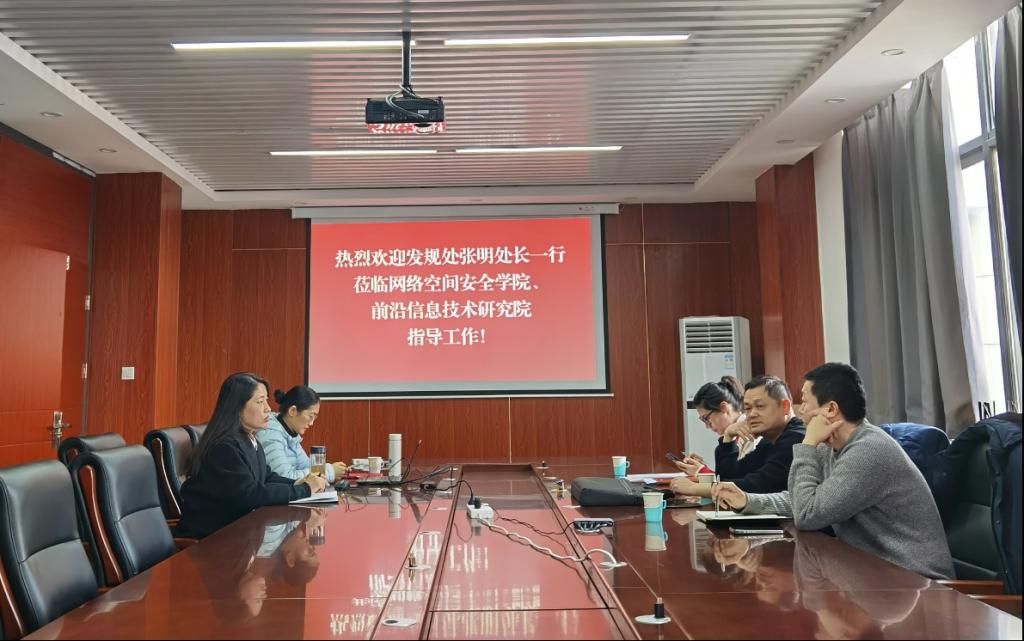、前沿信息技术研究院指导工作。副书记闫丽霞和副院长潘恒参加会议。