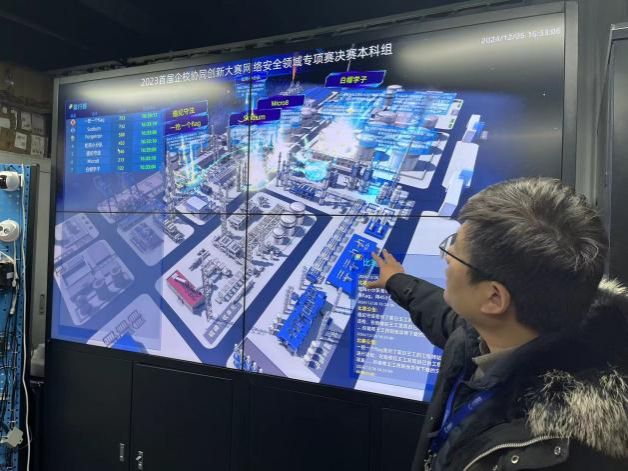 随后,技术总监李飞围绕公司的主要经营范围展开阐述,从网络安全防护系统的研发与应用,到大数据安全分析平台的搭建与运营,再到人工智能在网络安全领域的创新实践等诸多方面,事无巨细地进行了呈现,使得学院团队对公司的业务布局有了更为深刻的理解。李飞总监还亲自带领大家来到展示区域,细致地演示了产品展板和虚拟沙盘。针对产品背后涉及复杂技术细节,双方展开了一场热烈且深入的讨论,学院的老师们凭借深厚的专业知识储备,不断抛出有深度的问题和见解,而公司的技术团队也一一耐心解答,现场气氛十分活跃。在充分了解公司业务与技术情况后,双方围绕产教融合、资源共享、人才培养以及竞赛交流等合作的核心议题,开启了深度沟通的“大门”。