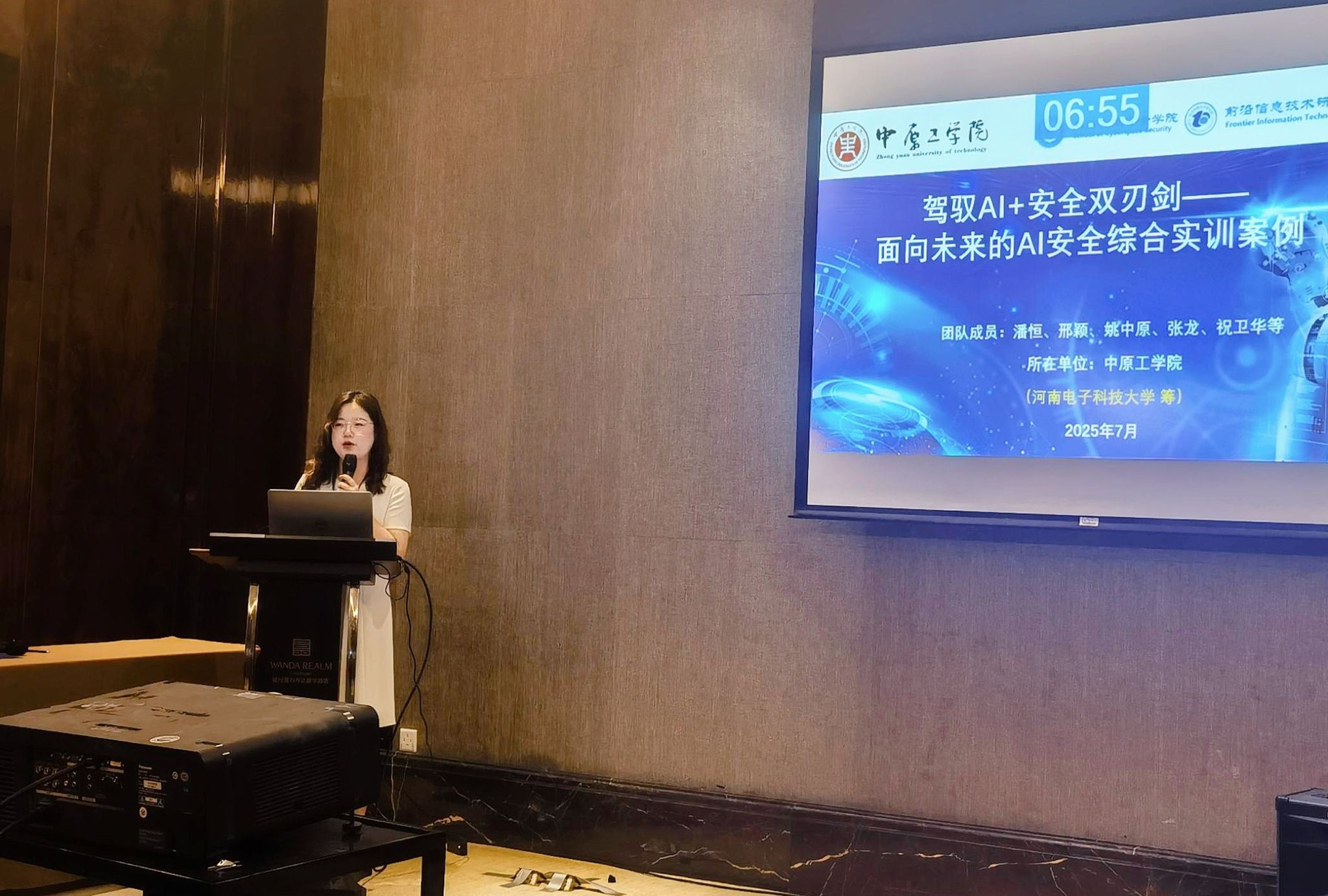 副院长邢颖代表团队参赛,以“驾驭AI+安全双刃剑——面向未来的AI安全综合实训案例”为主题汇报了学院基于“AI+安全”战略的人才培养实践。该教学案例荣获CCEC 2025第二届全国计算机教学案例大赛二等奖。