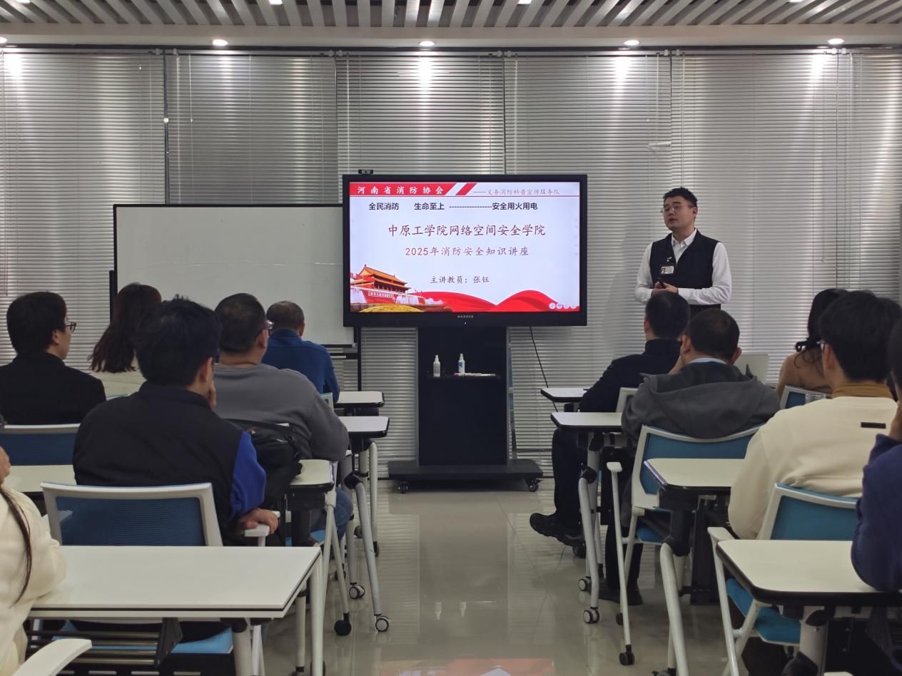 邀请河南省消防协会义务消防科普宣传服务队教员张钰,在三号组团楼A1208举办了消防安全知识讲座。学院党总支书记詹晋浩、执行院长潘恒、党总支副书记、副院长邢颖及全体教职工、本硕学生共同参与学习。