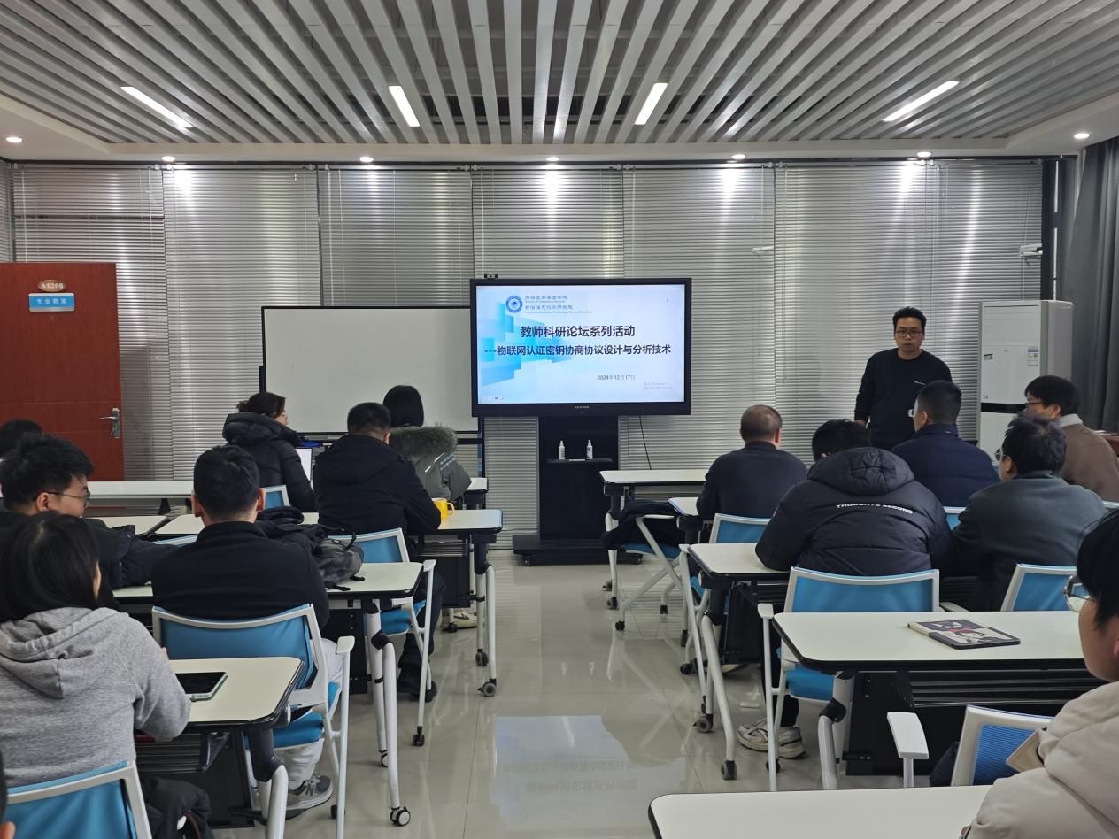 教师王向阳作了“物联网认证密钥协商协议设计与分析技术”的主题报告,内容涵盖物联网认证密钥协商协议的研究现状剖析、创新设计思路阐述、协议安全性分析方法讲解以及常用分析工具介绍,并对该领域的前沿热点研究进行了解读,分享了独到见解。
