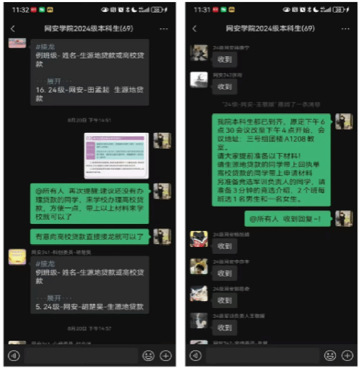 线上,郭政良通过腾讯会议召开国家助学贷款专项会议,介绍助学贷款的办理信息,如助学贷款提额、免息、受理公告、续贷远程受理操作流程、助学贷款app操作指引、还款指南、贷后须知等,帮助学生和家长全面了解贷款申请条件和办理流程等信息,进一步扩大贷款申请宣传范围,确保贷款办理“应晓尽晓”。此外,通过接龙的方式,摸清本年度助学到款的人数规模。线下,利用新生入学第一次班会收齐生源地贷款回执以及高校助学贷款的申请材料,为接下来的工作奠定基础。