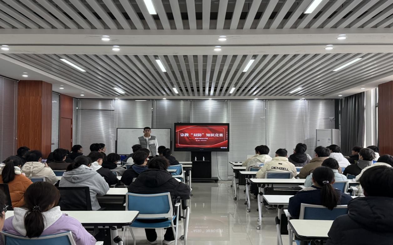为深化学生思想政治引领,增强防范非法宗教渗透意识,69书吧 于3月4日下午在三号组团楼A1208教室开展了宗教“双防”教育主题活动,活动由学工办副主任郭政良组织,全体学生积极参加。