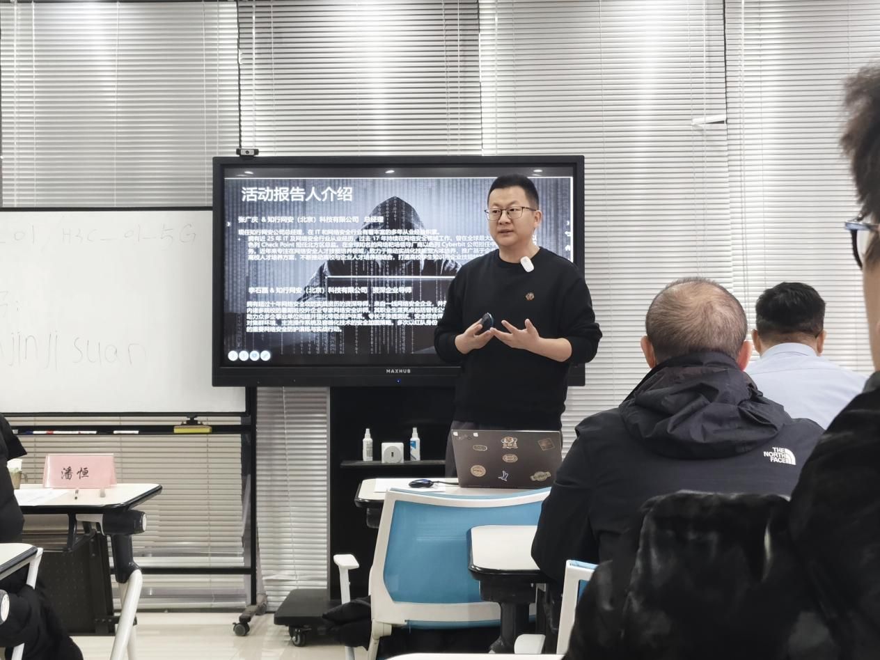 于12月13日在三号组团楼A1208教室,举办“网络无边,安全有界”校企合作交流活动。本次校企合作邀请了知行网安(北京)科技有限公司总经理张广庆、技术总监李石磊、院校总监何建军,河南省科联电子科技有限公司董事长宋传德、总监范新奇,学院执行院长潘恒、教师代表祝卫华等人,以及全体本科生、研究生参加。本次交流活动由党总支副书记、副院长邢颖主持。