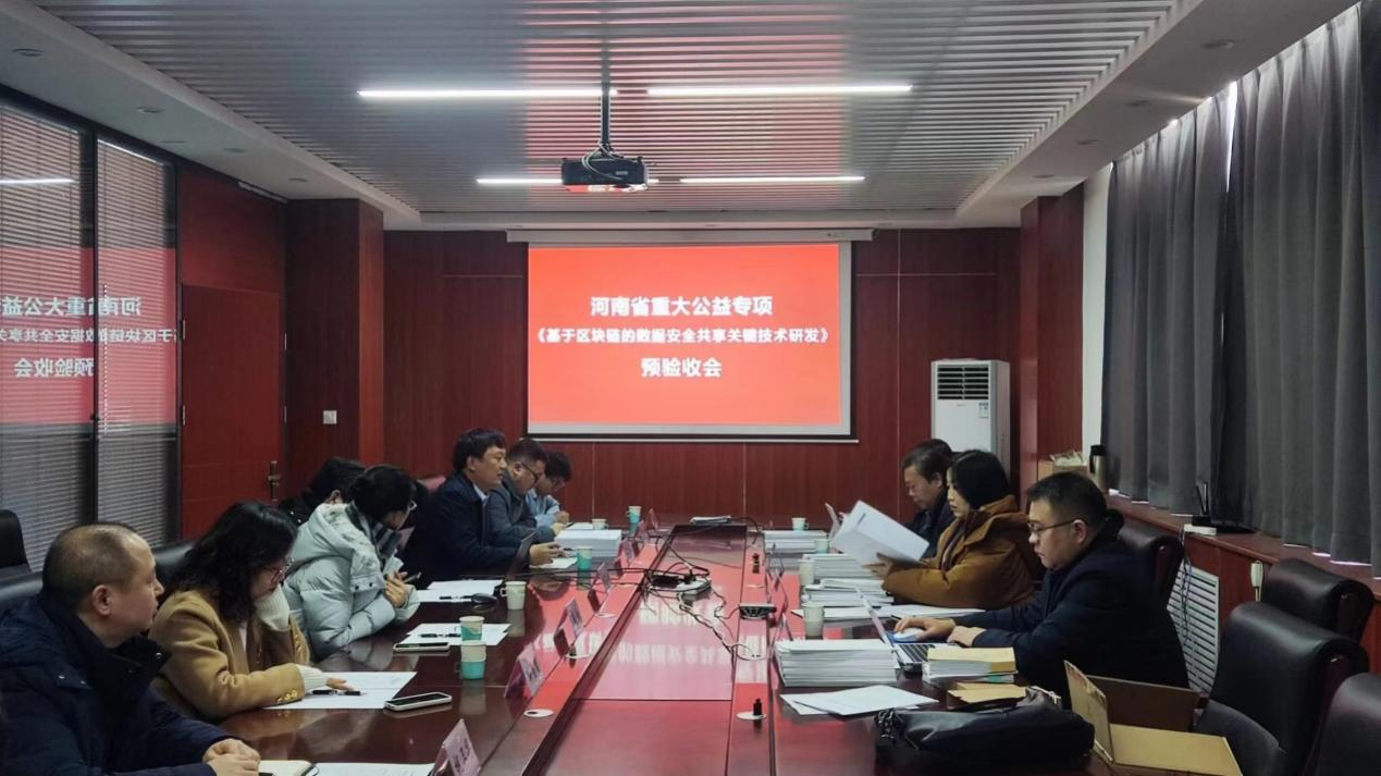 (前沿信息技术研究院)在3号组团楼12楼会议室组织召开了河南省重大公益专项《区块链在数据安全共享领域的关键技术研发》项目预验收会议。会议邀请郑州大学周清雷教授等技术专家和财务专家组成了项目验收组,项目组承担单位69书吧